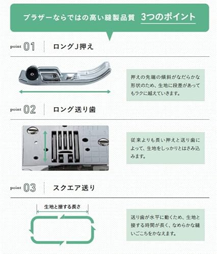 ワンハンド自動糸通し・クイック下糸セット・ クイック下糸巻き(下糸巻き独立モーター)・押え圧調節・ドロップフィード